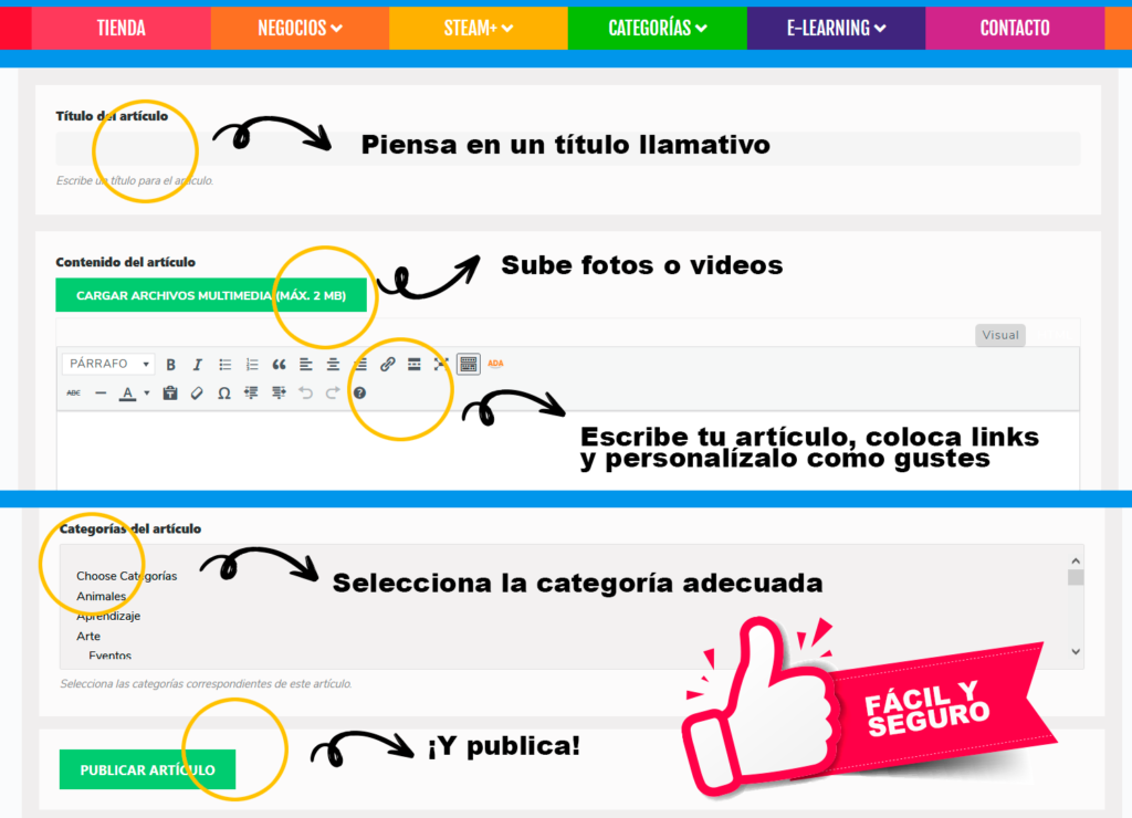 Te guiaremos para que escribas tus artículos de forma segura, creativa y profesional